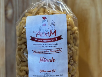 Diese Hörnle bestehen aus Hartweizengrieß und frischen Eiern. Die Form passt ideal für Aufläufe, Eintöpfe und Käserezepte. Die Oberfläche hält Saucen gut. Die Kochzeit bleibt kurz und liefert ein kräftiges Ergebnis.